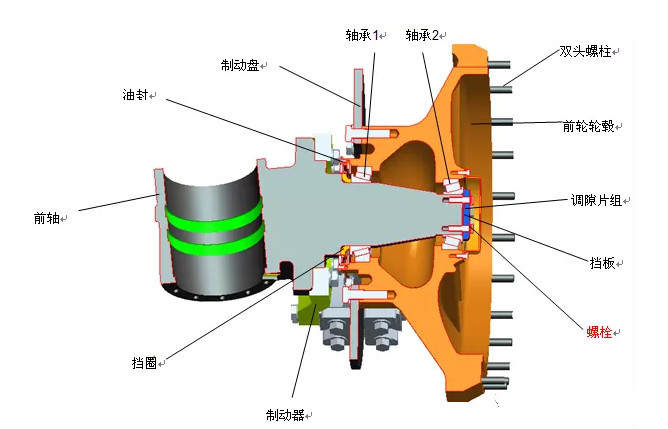 首先從螺栓安裝圖觀察,斷裂螺栓的安裝位置在用于固定軸承調(diào)隙組片的軸承擋板上,見(jiàn)圖15-17。