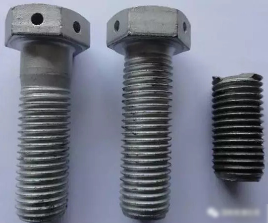 從前軸里面取出的一件(半截螺栓),另取2件完好件,分析斷裂原因。