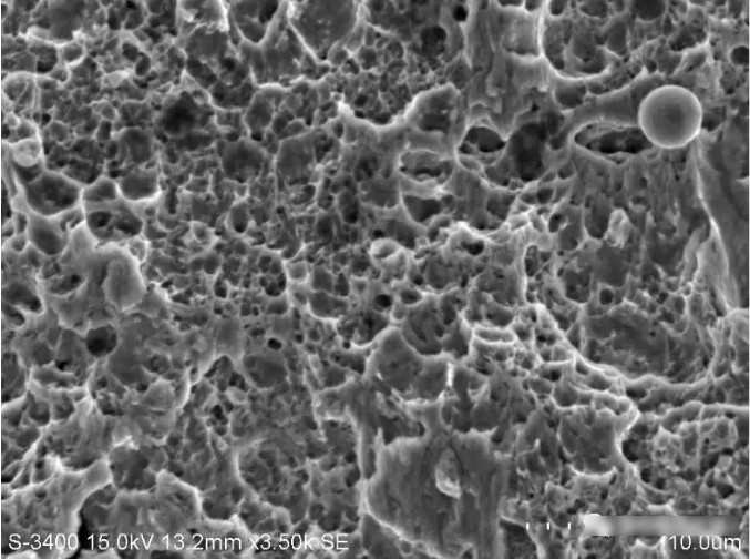 從斷裂源處至總終斷區(qū),微觀組織形貌主要分別為剪切韌窩、剪切與等軸混合韌窩、等軸韌窩。